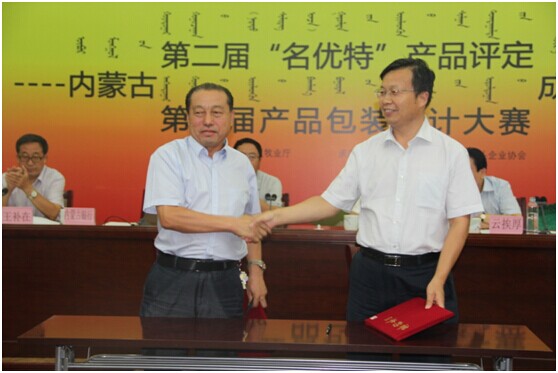 201487日,首屆內(nèi)蒙古自治區(qū)農(nóng)畜產(chǎn)品包裝設(shè)計競賽成果與2014(第二屆)內(nèi)蒙古“名優(yōu)特”農(nóng)畜產(chǎn)品認(rèn)定成果發(fā)布會在國際會展中心召開,自治區(qū)農(nóng)牧業(yè)廳廳長郭健、副廳長云挨厚、副廳長賈躍峰、辦公室主任侯雁冰及內(nèi)蒙古農(nóng)牧業(yè)產(chǎn)業(yè)化龍頭企業(yè)協(xié)會會長張世斌、執(zhí)行會長林永亮,招商銀行呼和浩特分行行長曲亮、內(nèi)蒙古銀行副行長靳生榮、中國郵儲銀行內(nèi)蒙古分行副行長鞏連華、中國銀行內(nèi)蒙古分行中小企業(yè)部總經(jīng)理劉揚出席了此次會議,農(nóng)牧業(yè)廳產(chǎn)業(yè)化處處長王補(bǔ)在主持會議。