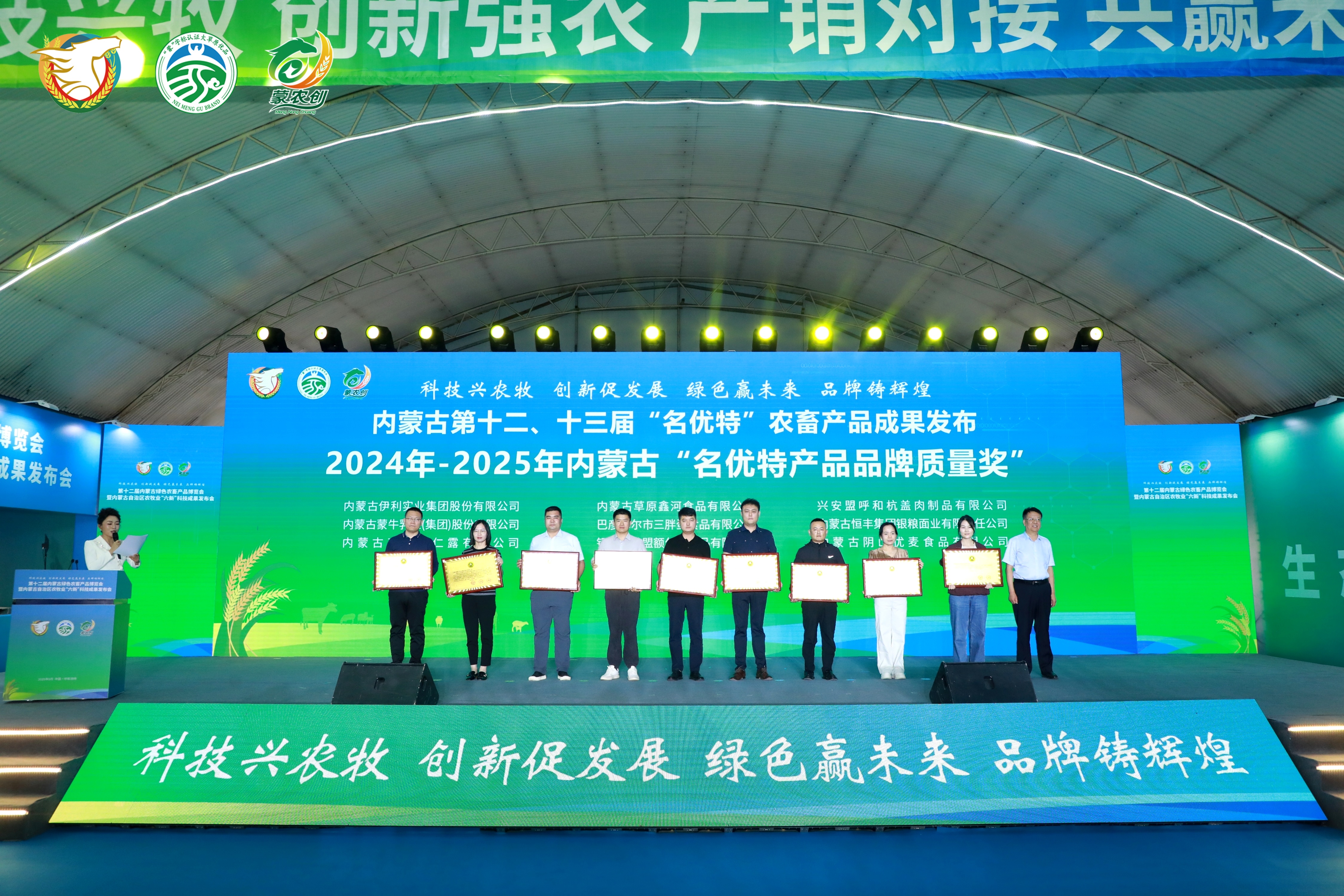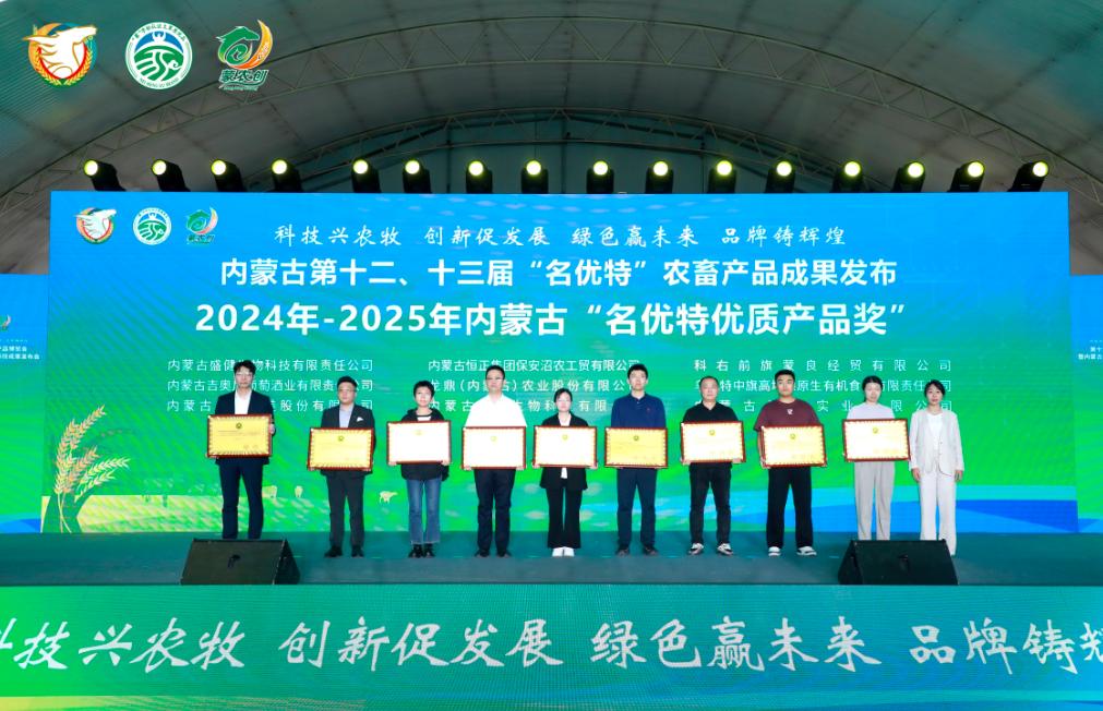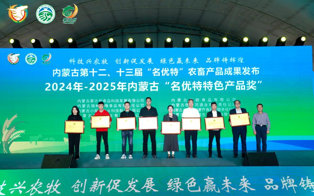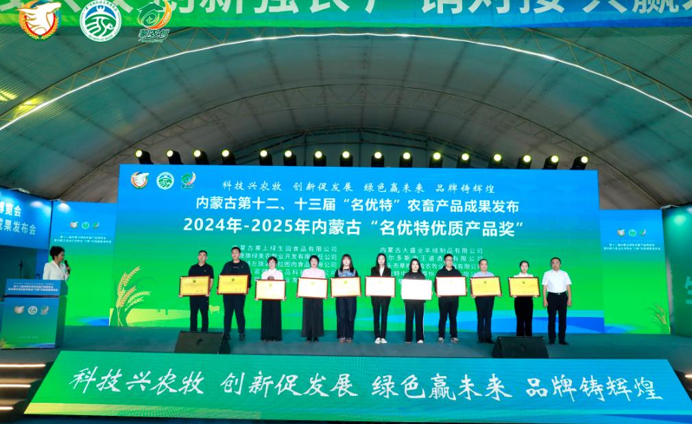 發(fā)布會(huì )上自治區農牧廳二級巡視員侯雁冰、畜牧局局長(cháng)紅海、自治區人民政府駐上海辦事處黨組書(shū)記、主任李志剛、自治區農牧廳鄉村產(chǎn)業(yè)發(fā)展和農墾處處長(cháng)邢瑞、農畜產(chǎn)品質(zhì)量安全中心副主任云巖春、協(xié)會(huì )會(huì )長(cháng)徐建忠、內蒙古綠色與有機食品協(xié)會(huì )常務(wù)副會(huì )長(cháng)、高級顧問(wèn)邢黎明為獲得第十二、十三屆名優(yōu)特認證的企業(yè)頒發(fā)獎牌并合影留念。